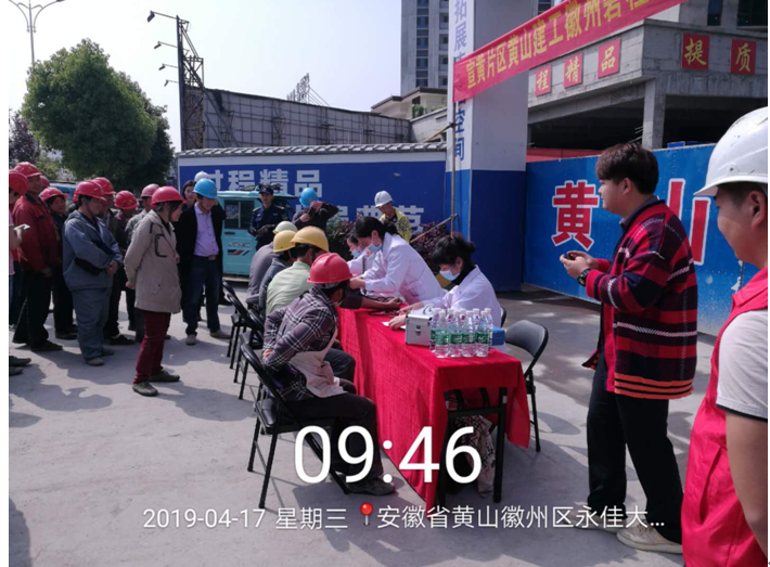 2019年4月17日上午9时,3044永利集团承建的徽州碧桂园德源项目工程东大门,人声鼎沸、欢声笑语,每个人脸上都洋溢着幸福的笑容,他们排着队,有组织、有秩序地参加由碧桂园德源工程施工项目部组织的“关爱健康、免费体检”活动。此次体检活动邀请了屯溪同仁门诊部的四名医生,分科体检,对每位职工的心率、血压、外科、口腔等做了细致的检查,并做好体检记录,同时对工友们关心的日常生活问题、常识做了解答和温馨提示,此次项目部参加体检人员惠及95名。本次活动是为了增强员工关怀,保障员工身体健康,营造”平安、和谐、幸福、美丽”的示范工地。