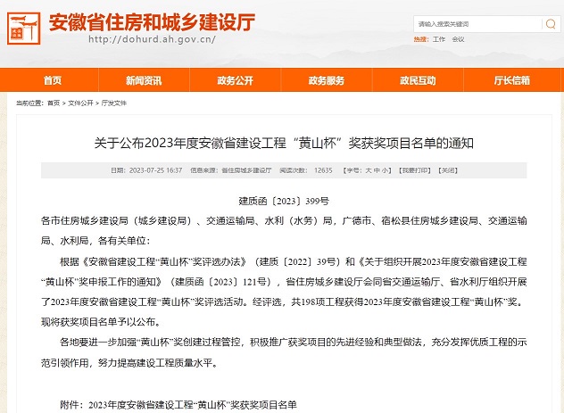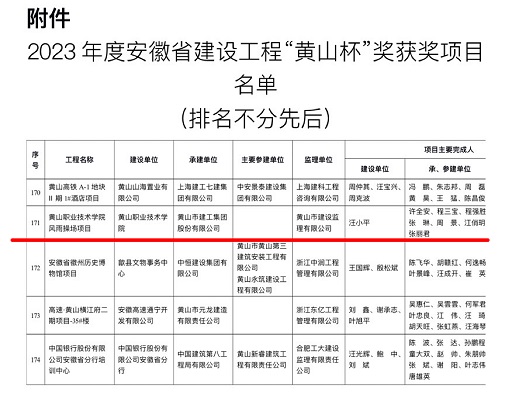 7月25日,省住建厅公布2023年度安徽省建设工程“黄山杯”奖获奖项目名单,3044永利集团承建的黄山职业技术学院风雨操场项目工程位列榜单、喜获殊荣。