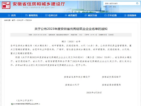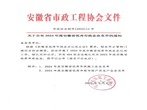 近日,3044永利集团接连获得两项省级权威认可:安徽省住房和城乡建设厅公布了《2023年度安徽省优秀建筑业企业名单》,3044永利集团有限公司凭借卓越的综合实力、突出的行业贡献和良好的社会口碑再次成功入选。同时又荣获安徽省市政工程协会认定的"2024年度优秀市政企业"称号。这一系列荣誉的取得,充分展现了企业在建筑工程和市政工程领域的综合实力和行业领先地位。